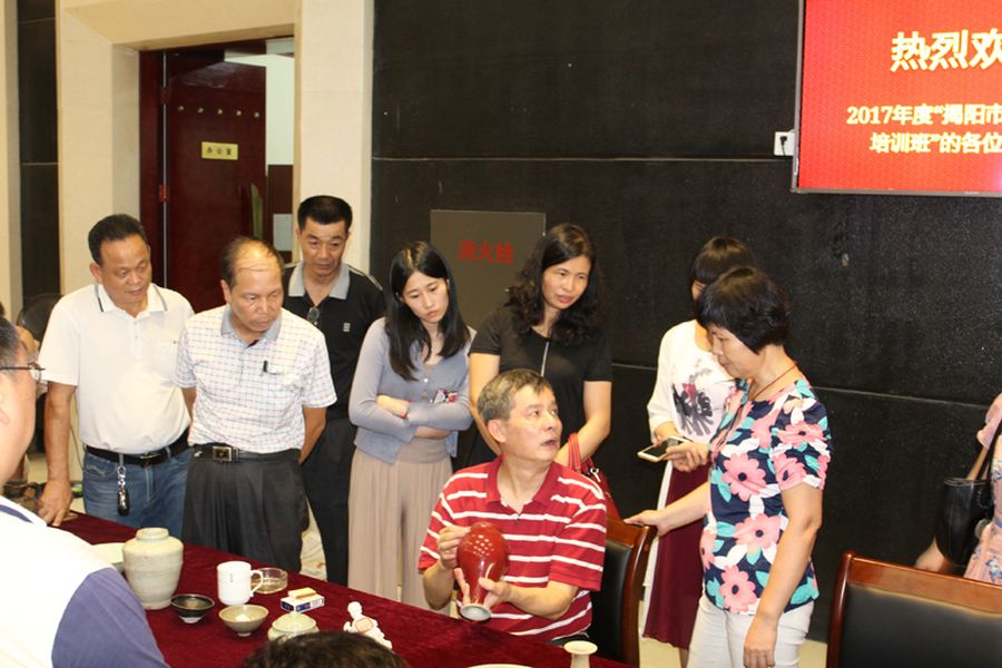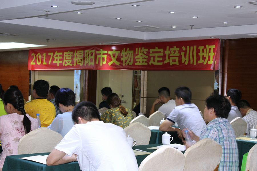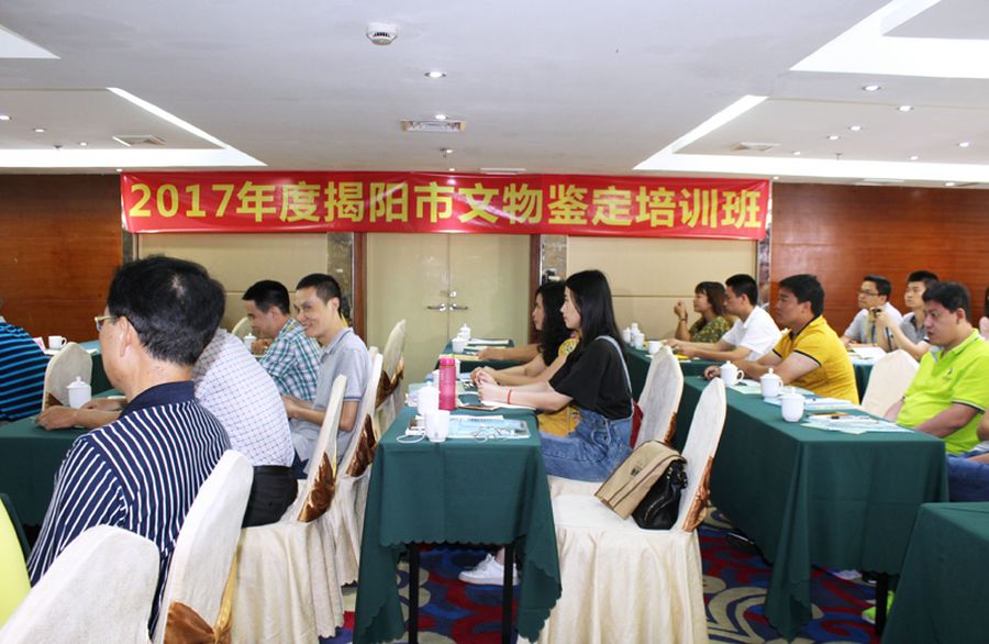 2017年7月10-11日,由揭阳市文广新局主办,市博物馆承办的“2017年全市文物鉴定培训班”在揭阳金叶大酒店举办,这是我市文化系统第一次举办的文物鉴定培训班,参加培训的有全市文博人员40多人,特别聘请省专家谢海山、张亮、林锐为学员讲课,内容有“唐宋时期陶瓷装饰风格和仿制探讨”、“中国古代玉文化及各时代玉器主要特点”、“近现代书画鉴定基础”。学员还到市博物馆观摩实物,听专家讲解。