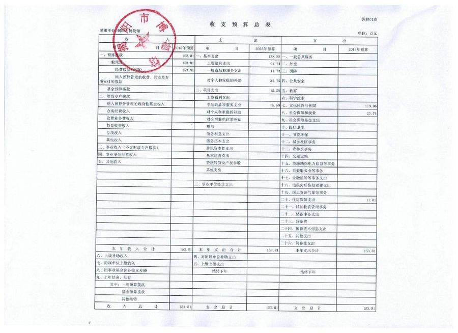 2014年度收入支出、2015预算报表