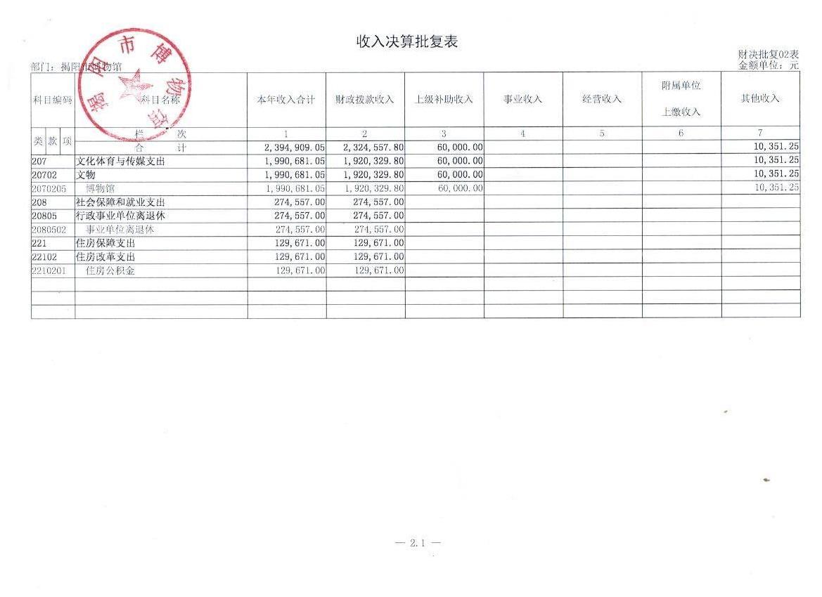 二、 收入决算批复表