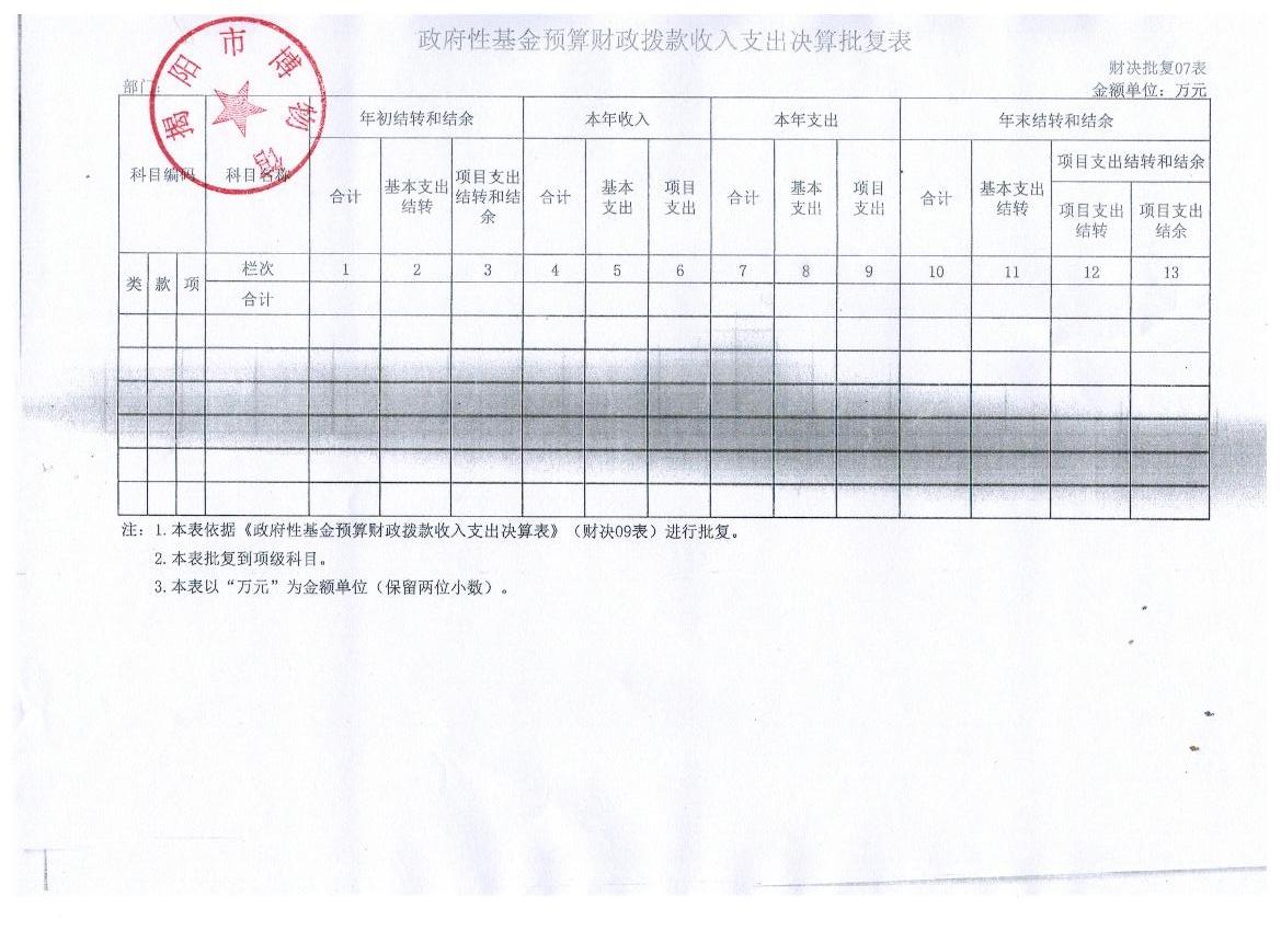 一、 收入支出决算批复表