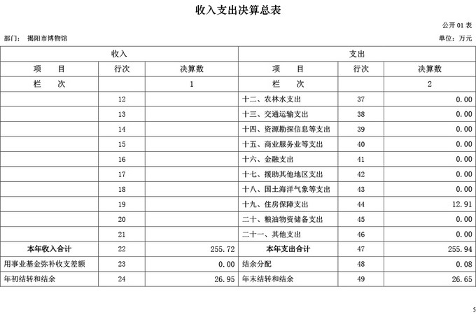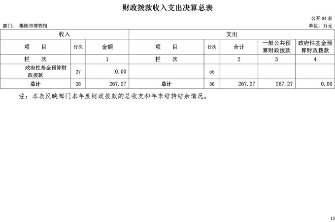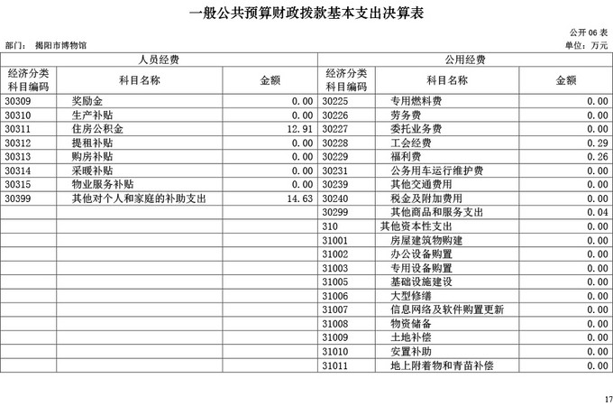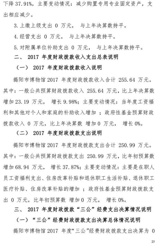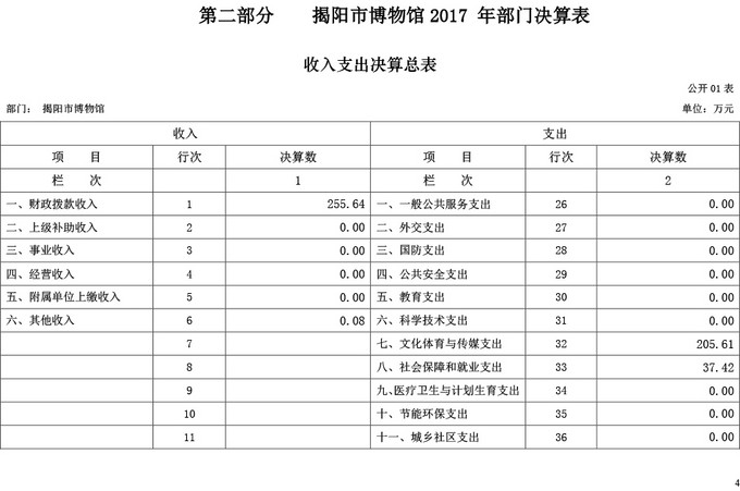 揭阳市博物馆2017年部门决算公开