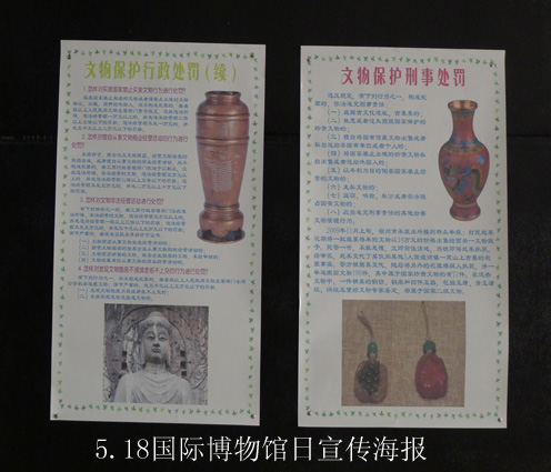 今年5月18日是第三十七届国际博物馆日,我馆在揭阳楼二楼的揭阳特色文化展览厅正常免费对外开放,张贴文化保护知识海报挂图供观众参观学习,以提高广大人民群众文物保护意识.同时免费赠送博物馆知识和文化遗产知识宣传资料.