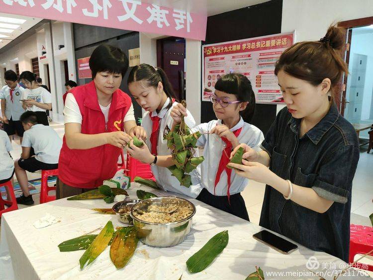 •↓老师在手把手教大家包粽子↓•