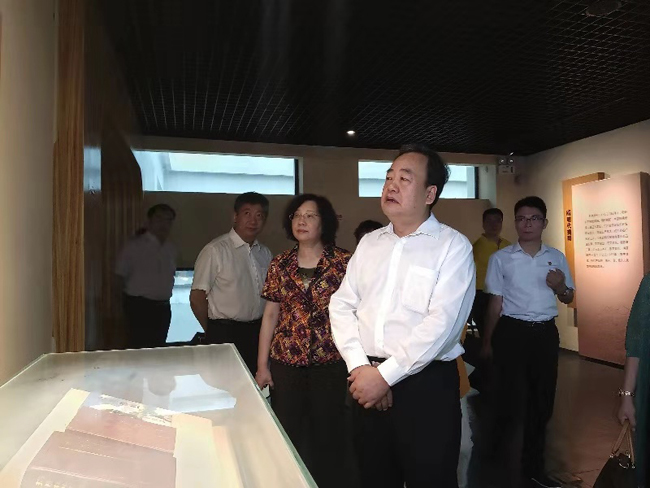 2019年7月31日,省人大常委会副主任王学成一行十人在市委常委、宣传部长方赛妹等领导陪同下实地检查揭阳市博物馆。