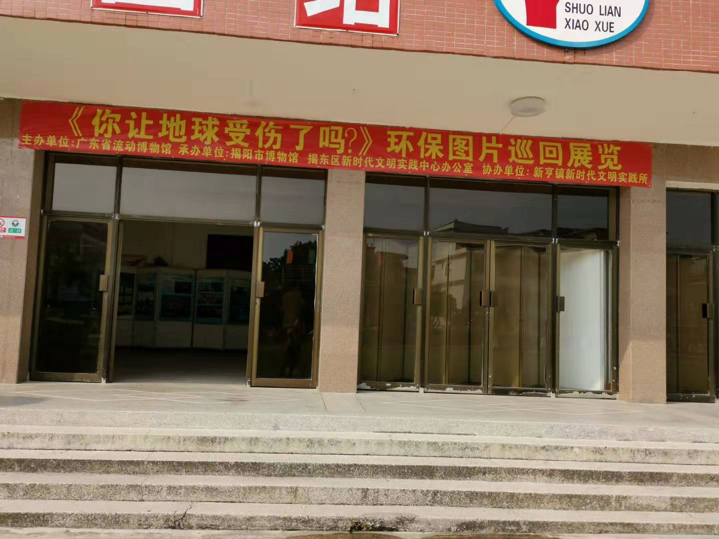 2019年9月5日,揭阳市博物馆陈列部副部长黄克带领陈列部同事送《你让地球受伤了吗--认识自然,珍爱地球》图片展走进揭东区新亨硕联小学。