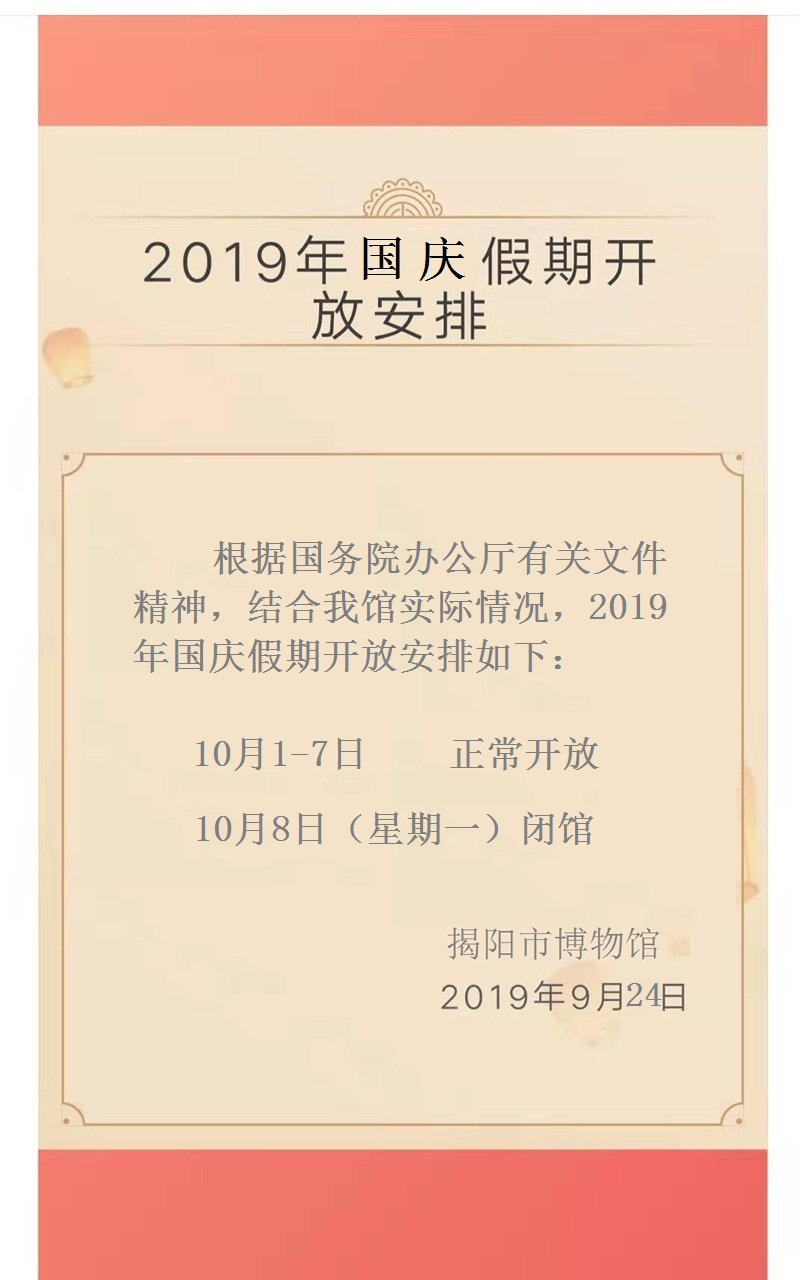 2019年国庆假期开放安排