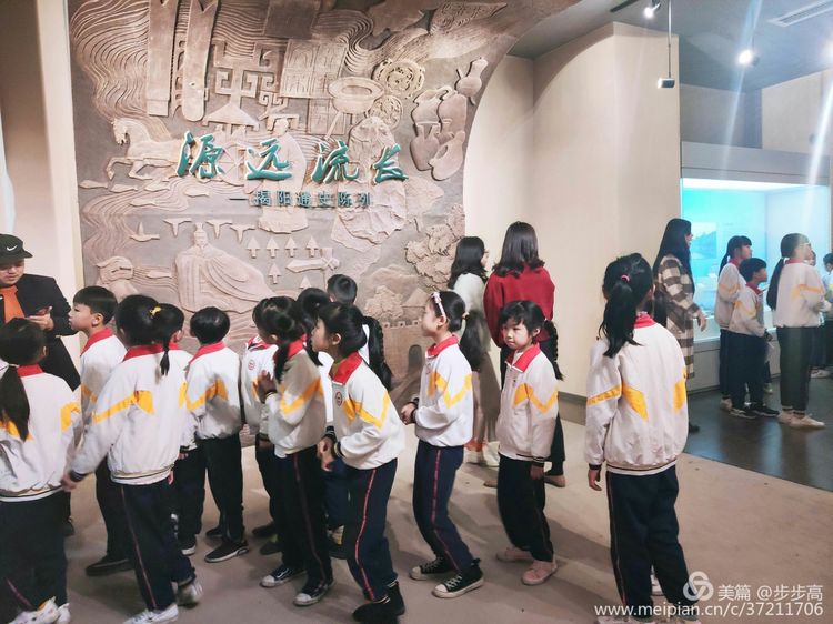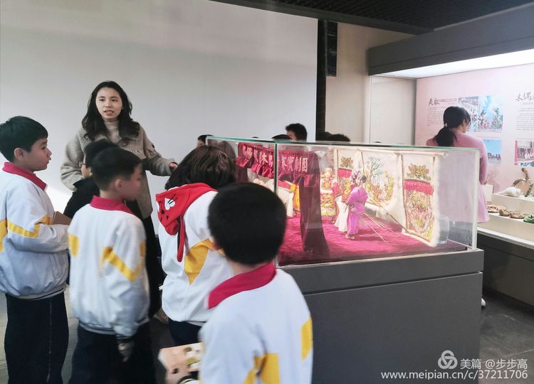↓学生们在博物馆工作人员和老师带领下参观展览↓