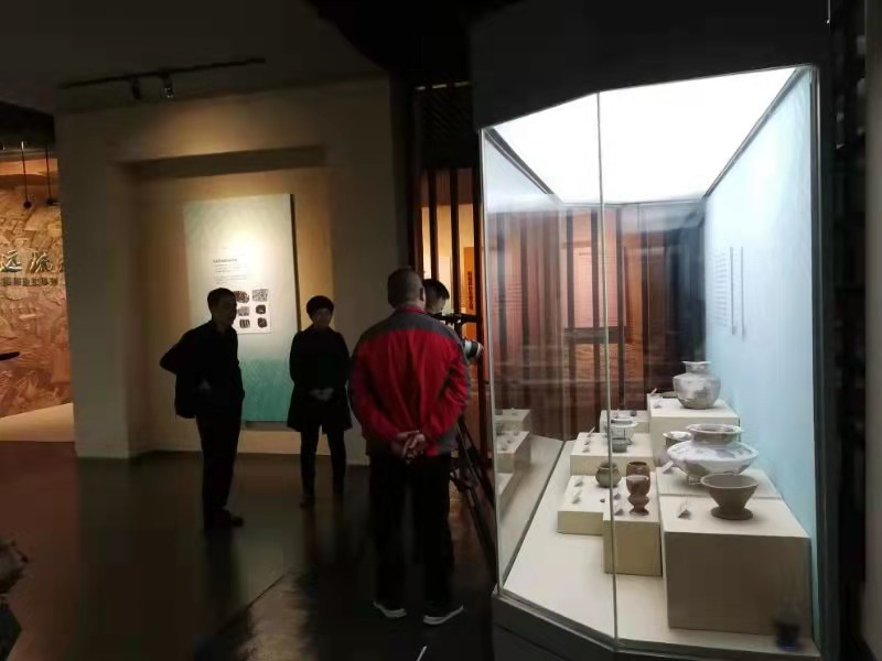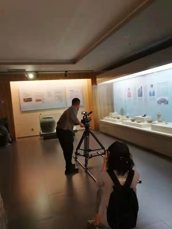 今天早上八点半,央视摄制组来到位于空港区文化广场的揭阳市博物馆,拍摄通史展厅馆藏文物和展览图片,随后来到革命史展厅和民俗史展厅采访拍摄。