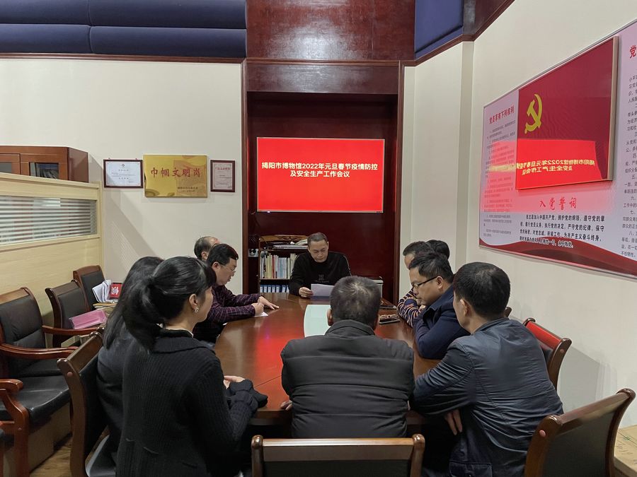 为贯彻落实2022年元旦春节全国文化和旅游疫情防控及假日市场工作电视电话会议精神,切实做好节假日期间文化和旅游疫情防控与安全生产工作,确保揭阳市博物馆安全、稳定、有序运行,12月30日,市博物馆召开2022年元旦春节疫情防控及安全生产工作会议。