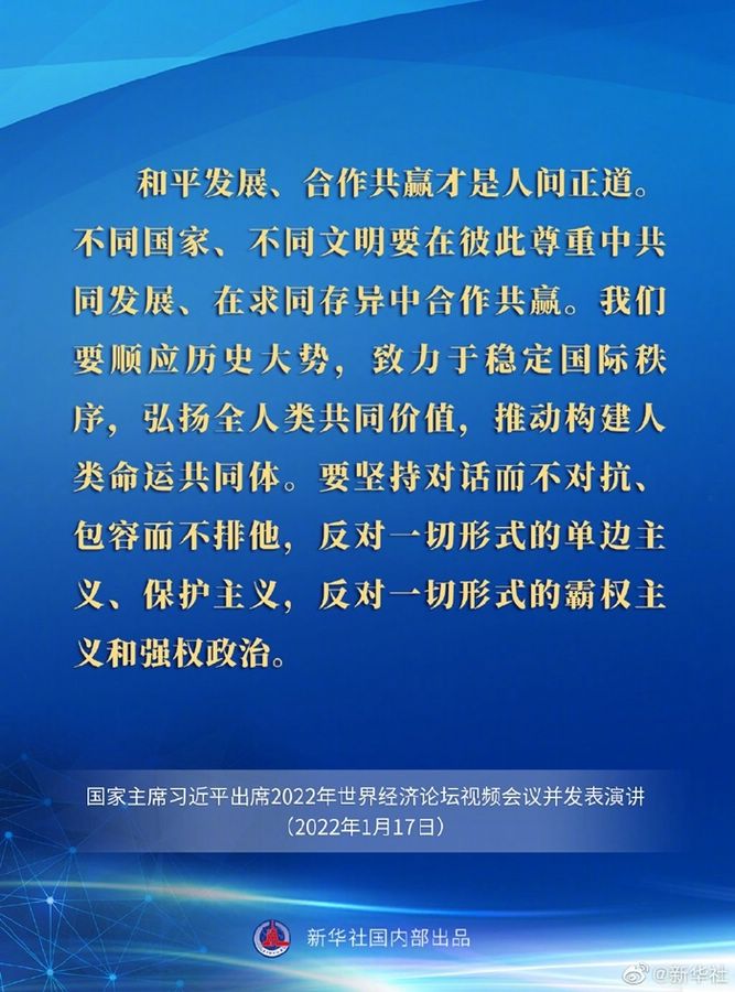 习近平在2022年世界经济论坛视频会议上的演讲要点速览