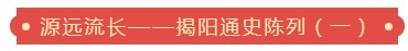 《揭阳通史陈列》为揭阳市博物馆常设展览之一,共分六大部分。涵盖了自先秦至清代揭阳(含惠来、普宁)各个历史时期人文、经济、城建和社会变革等方面的重要内容,展现了揭阳世世代代人民征服自然、改造自然、建设家园的精神风貌和不屈不挠、艰苦创业、奋发图强的优秀品格,凸显了揭阳在岭南地区乃至整个中华民族优秀文化中的重要地位和独特魅力。