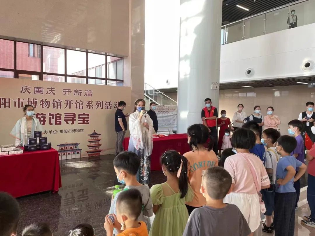 此外,假期期间馆内每日固定举办“游馆寻宝”亲子活动,以展厅内容为基础开展互动趣味问答游戏,小朋友与家长们通力合作,在愉快的活动氛围中,将揭阳厚重的历史文化融入心间。
