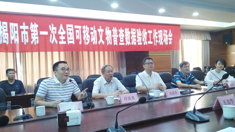 2016年7月12日,省普查办组织验收组对我市第一次全国可移动文物普查登录数据进行验收,验收工作按照国家文物局制定的“第一次全国可移动文物普查数据质量评定标准”,对藏品性质、照片、定名、年代、类别、质地、数量、尺寸、完残状况等信息进行了严格审核。揭阳市博物馆、丁日昌纪念馆、普宁市博物馆、揭东区博物馆、揭西县博物馆、惠来县博物馆等单位参与验收。