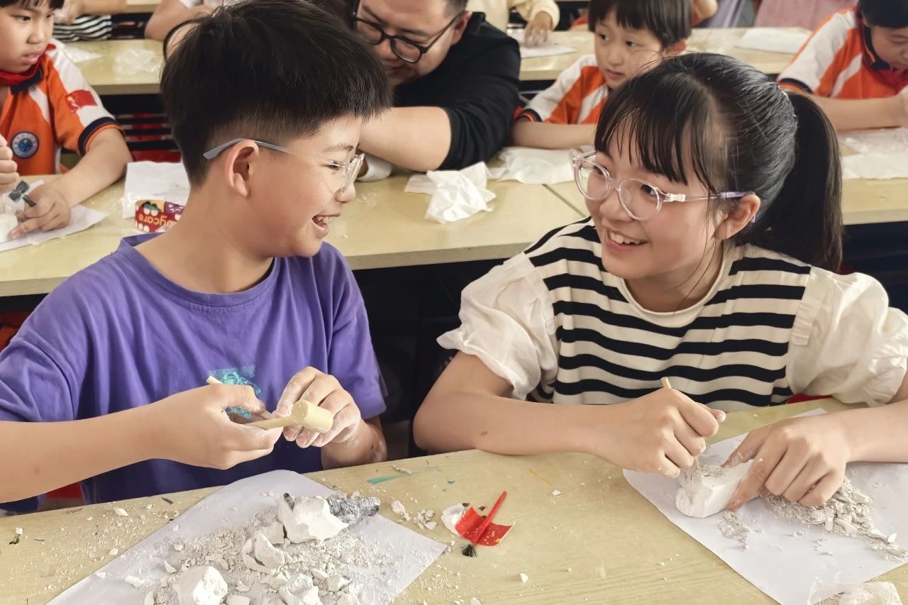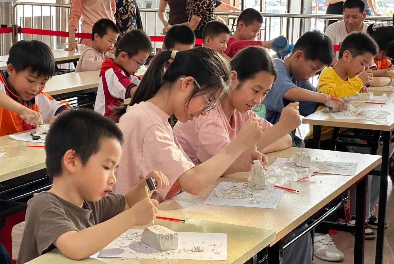参观结束后,孩子们又立刻化身“小小考古学家”,投入到“兵马俑”考古盲盒体验的快乐中!在土层表面喷水,探铲进行初步定位,用竹签一层层“刮”去泥土,留出“兵马俑”边缘,用竹签细小处与刷子配合清理,直至显露真容,大家都拥有属于自己的“兵马俑”啦!