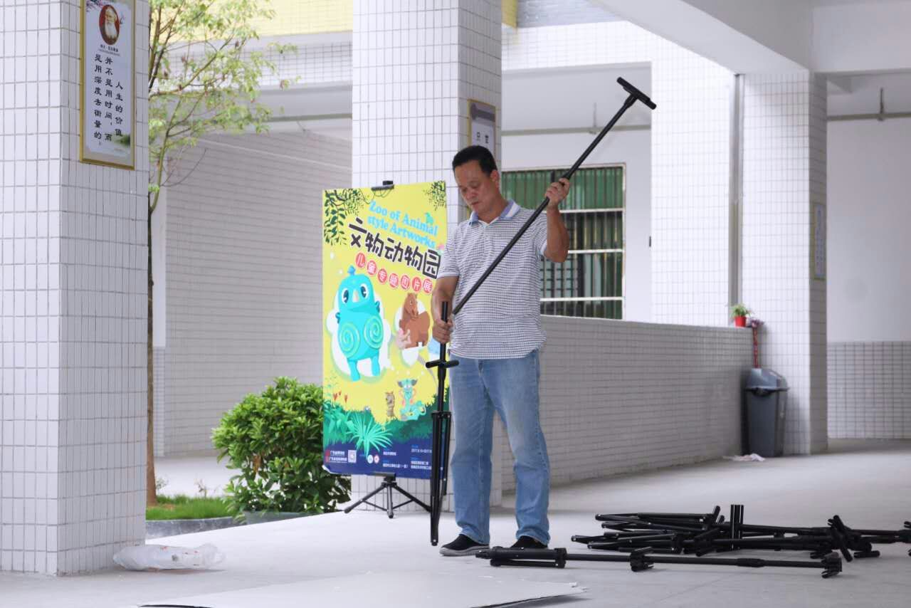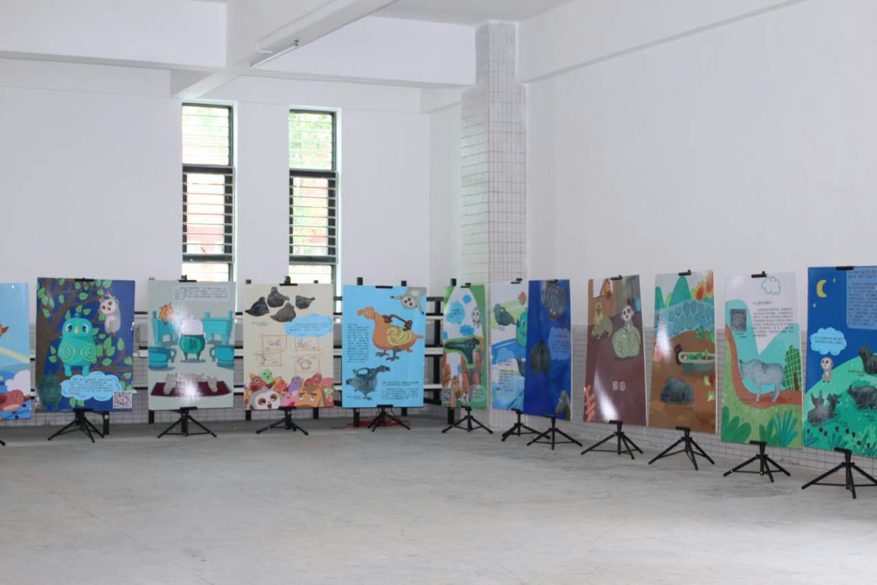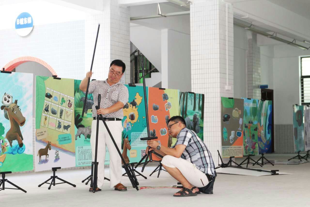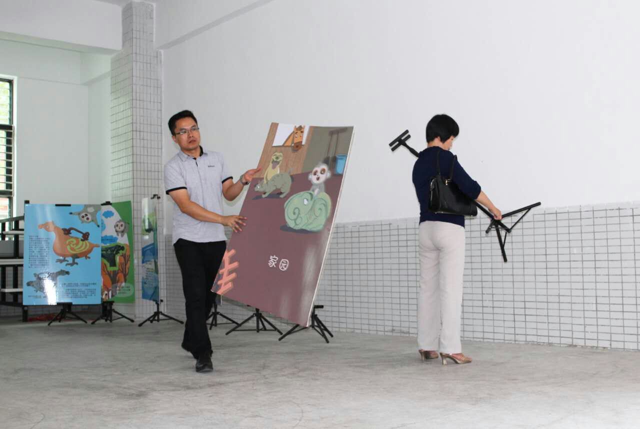 ▽下图为我馆工作人员在学校布展与撤展的场景▽