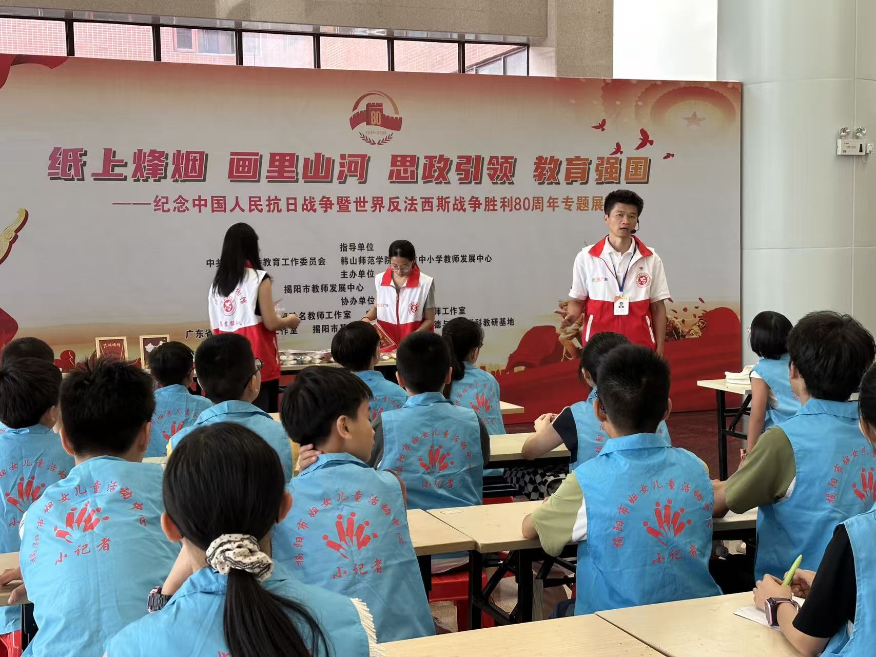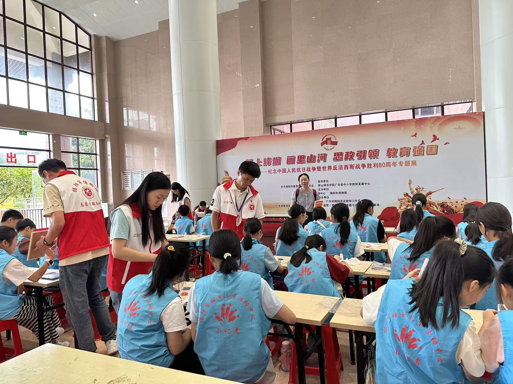9月7日下午,“薪火相传忆抗战 砥砺前行新征程”小记者抗战专题爱国主义教育活动在揭阳市博物馆圆满举行。此次活动由揭阳市博物馆与揭阳市妇女儿童活动中心联合主办,旨在纪念中国人民抗日战争暨世界反法西斯战争胜利80周年,让孩子们在沉浸式体验中感悟抗战精神,传承红色血脉。