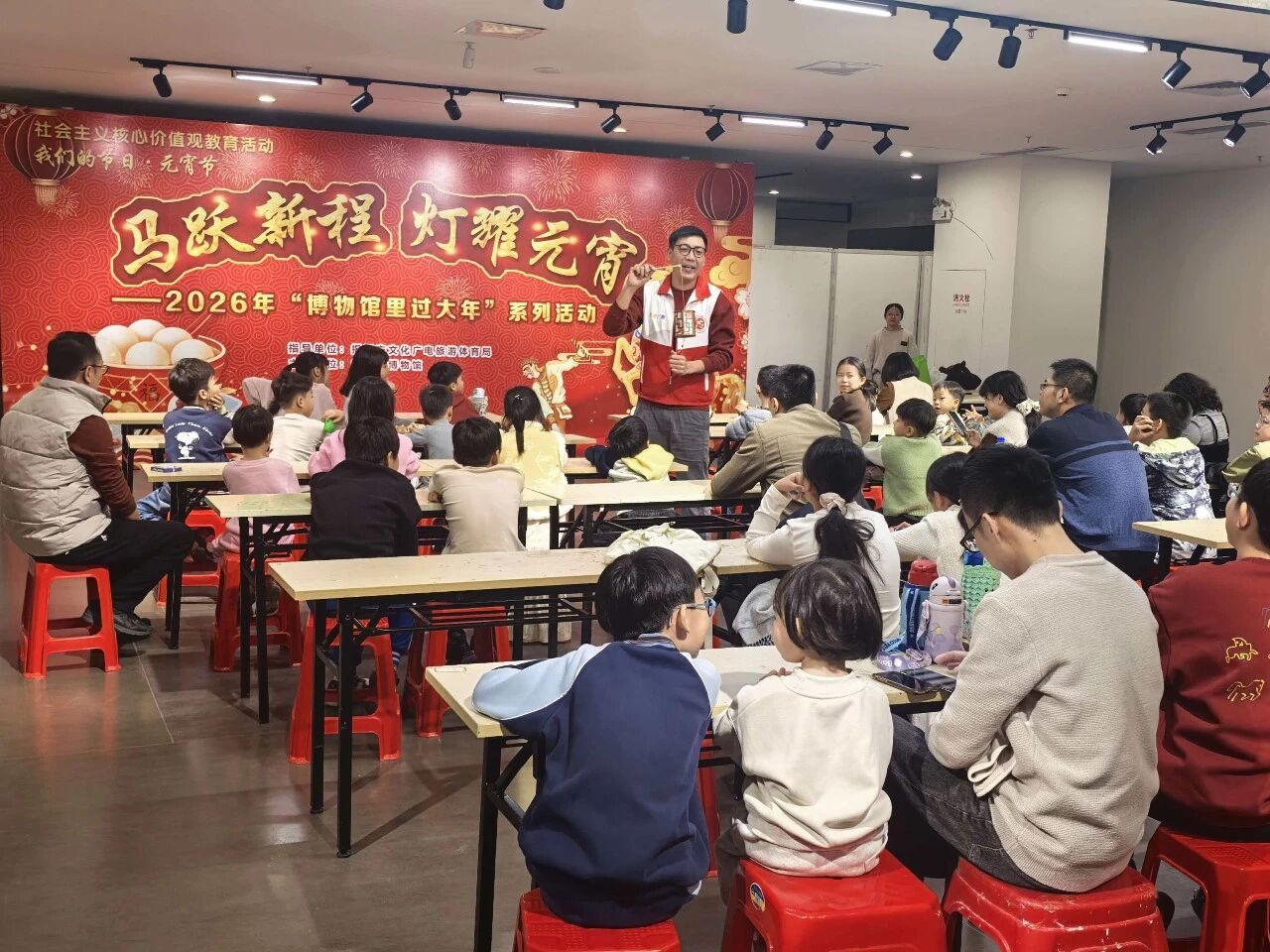 制作环节正式开启前,社教老师先带领大家开启了一场 “元宵文化小课堂”。从元宵赏灯的千年习俗,到“东风夜放花千树”的经典诗词,老师用生动有趣的语言,将节日的由来与文化内涵娓娓道来。大家听得津津有味,时不时举手互动,在欢声笑语中走近传统文化。